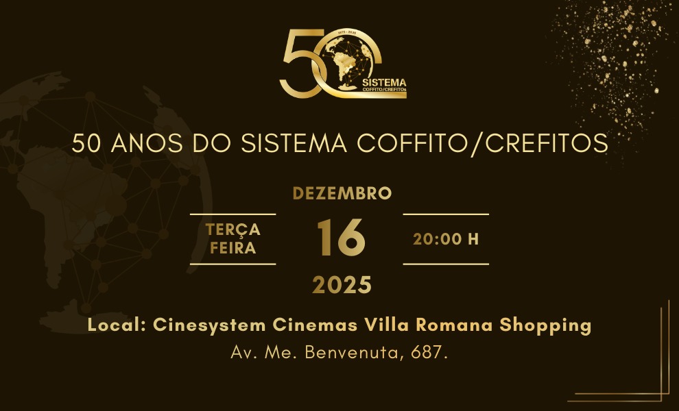 Em celebração aos 50 anos da Lei n.º 6.316/1975, marco que deu origem ao Sistema COFFITO/CREFITOs, convidamos você para uma noite especial!